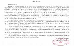 浮梁县体育学校给外国语学院的感谢信