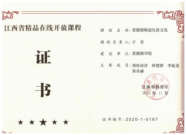 《景德镇陶瓷礼俗文化》课程获江西省精品在线课程、共享课程