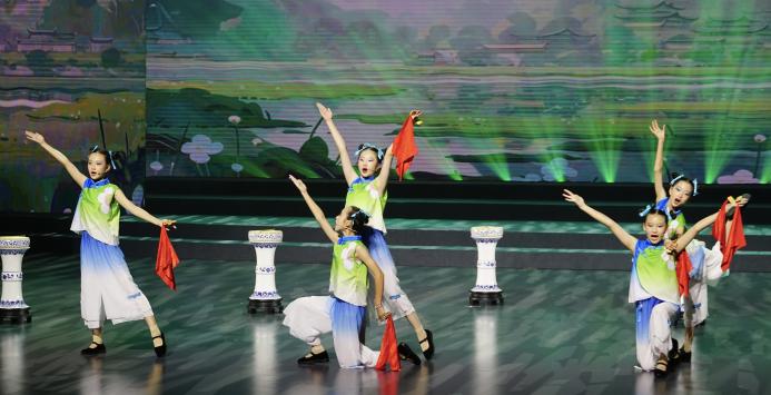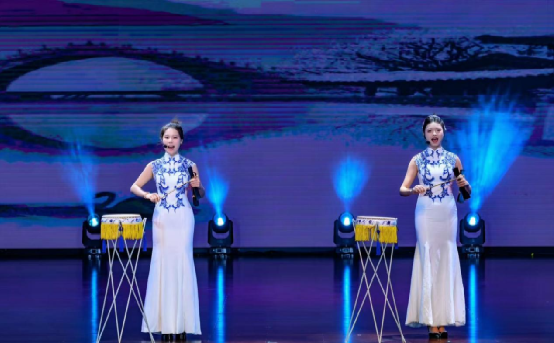 学生表演的景德镇大鼓《芳华万代》参加陶阳里庙会