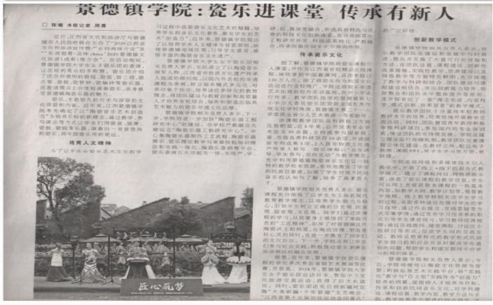 实践成果曾被中国旅游报刊登题为《米兰milan官方网站:瓷乐进课堂 传承有新人》专题报道,被“中共中央宣传部 学习强国”平台予以转载,并被中央电视台、新华网、共产党员网、新华社官方账号、中国报道网、中文导报网、江西日报、江西教育网、浙江卫视等10余家官方媒体平台进行相关报道。
