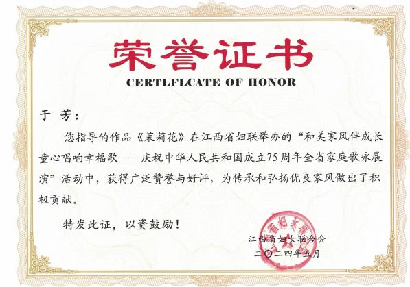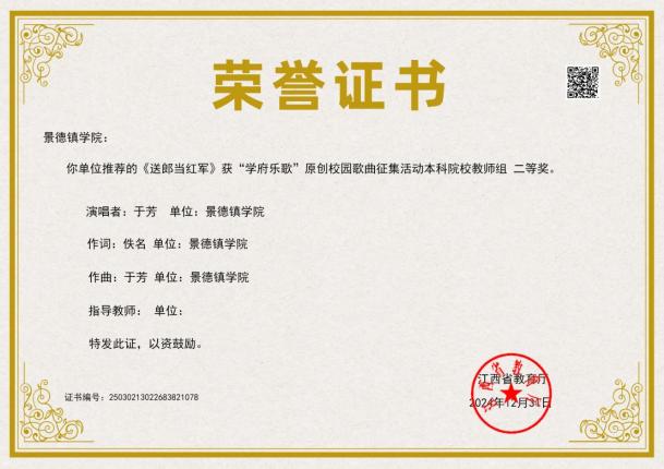 音乐舞蹈学院合唱团《天下乡亲》荣获“庆祝中华人民共和国成立75周年景德镇市第四十四届群众歌咏月活动”一等奖
