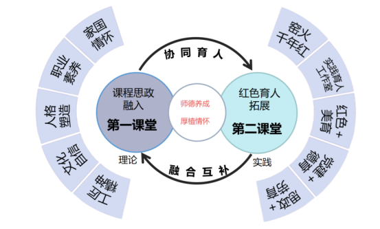 学院充分发挥国家一流专业——工艺美术专业的辐射带动作用,组建高素质育人团队,构建“党政齐抓、全域共管”的协同育人格局,将工匠精神、劳模事迹、奉献基因有机融入课程思政体系。通过深化第一课堂、拓展第二课堂、延伸第三课堂,学院打通育人“最后一公里”。“艺抹红心”“瓷里觅红”社会实践团队获评“全省优秀实践团队”;“红色五重奏”团队作品荣获江西省“挑战杯”红色专项一等奖,实现了赛事成绩的历史性突破。