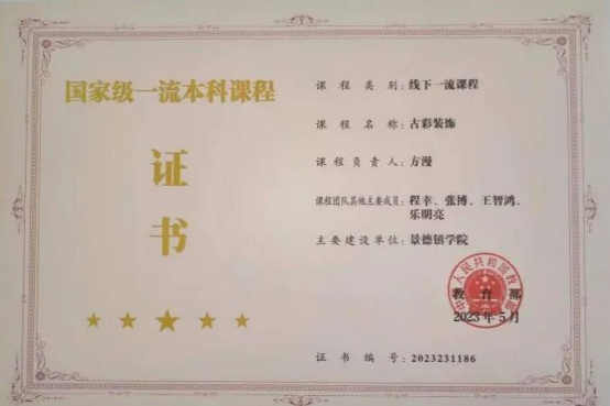 学院持续深化教育教学改革:对应行业需求新增“陶瓷书法”“漆陶”等5个特色方向;构建“技艺-创意-融合”递进式模块化课程群;以“教学质量提升年”为抓手,提升教育教学能力,全面推行项目化、成果导向的教学方法。《古彩装饰》获国家级一流本科课程、省级教学成果奖4项、省级教学团队2项、省级教师教学竞赛9项、获省级课程建设3项、省级教改课题12项。