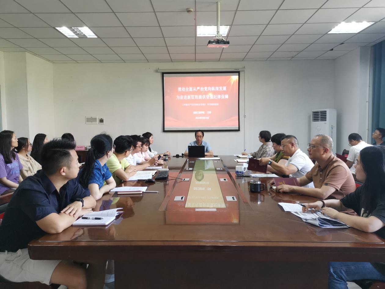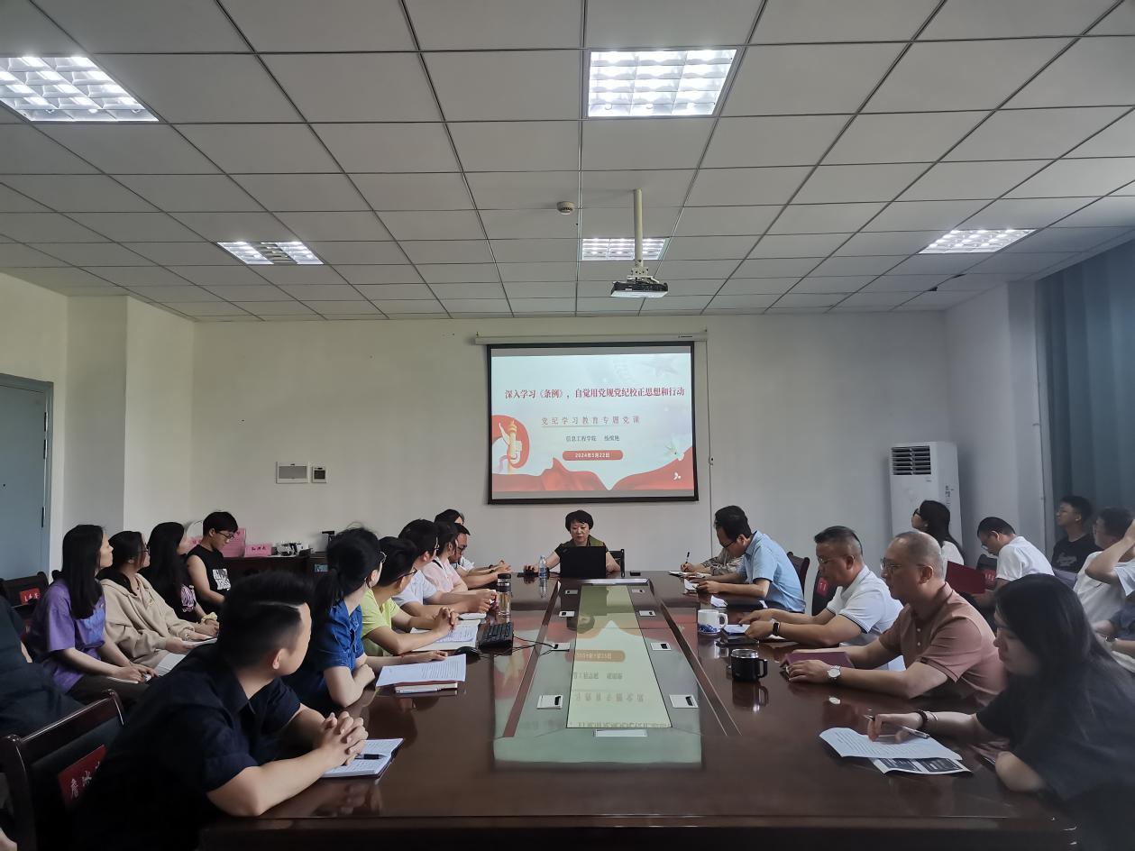 (本网讯:文|江姗/图詹冰清、徐周玉)为深入学习贯彻习近平总书记关于加强党的纪律教育的重要论述,认真学习新修订的《中国共产党纪律处分条例》(以下简称《条例》),推动党纪学习教育入脑入心走深走实,5月22日-24日,信息工程学院举办党纪学习教育读书班。