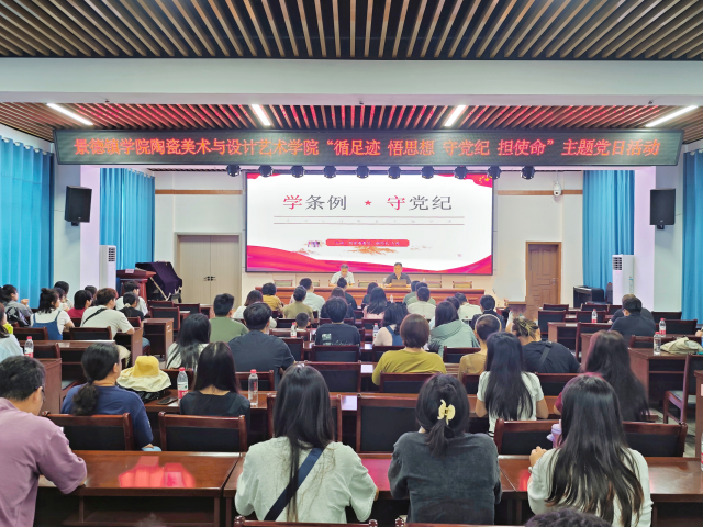 陶瓷美术与设计艺术学院党委书记陈后辉,院长张博,党委副书记胡文毅,副院长程幸、朱希睿和学院全体师生党员、教职工代表100余人参加此次活动。