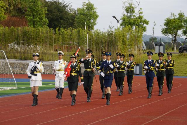 (本网讯:李婷婷)9月30日,田径场上,师生肃立,米兰红旗护卫队,以挺拔的身姿,整齐的步伐,护送国旗升上旗台。迎着仲秋的朝阳,伴随着雄壮的国歌,五星红旗冉冉升起。