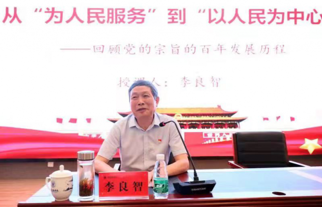 (图|贾倩 文|董帅、贾倩)6月29日下午,校党委书记李良智在一号报告厅为师生讲授《从“为人民服务”到“以人民为中心”——回顾党的宗旨的百年发展历程》专题党课。