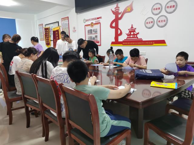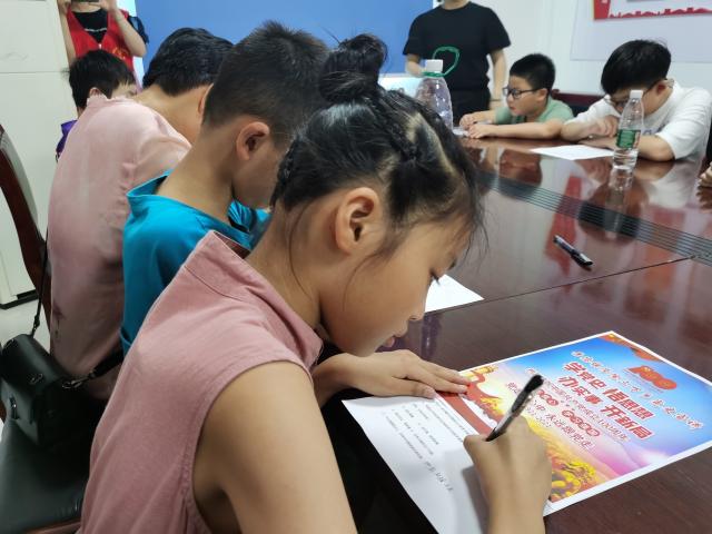 青少年们正在完成党史知识问卷