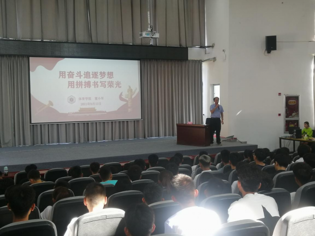 党总支书记董小军以《用奋斗追逐梦想、用拼搏书写荣光》为题,为新同学们上“开学第一课”。他通过我国近代体育发展的高光时刻、新时代国家体育事业蓬勃发展的气象,诠释了“为国争光、无私奉献、科学求实、遵纪守法、团结协作、顽强拼搏”的中华体育精神。希望新同学牢记习近平总书记对新时代中国青年的殷切嘱托,珍惜宝贵大学时光,做到“人生理想不可负、勤奋好学不可懈、诚信友爱不可失、自强不息不可缺”,弘扬中华体育精神,立志成才,努力成才。