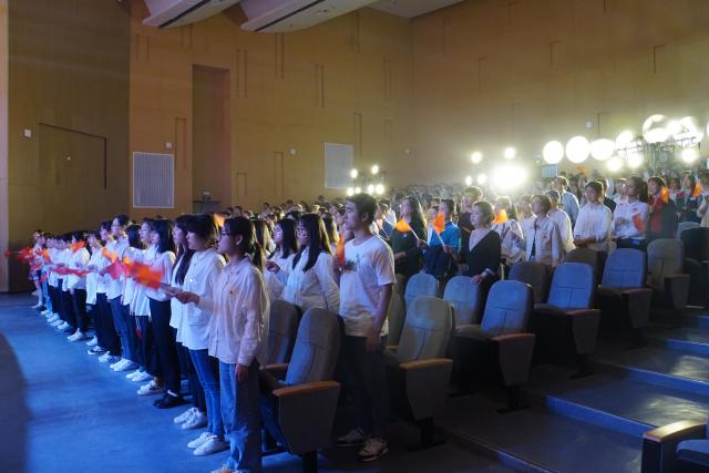 一首红歌就是一段历史,一首红歌就是一面旗帜,大会在校领导班子和全体师生大合唱《没有共产党就没有新中国》中进入高潮,师生们挥舞着党旗,在党史学习教育中汲取着奋进力量。