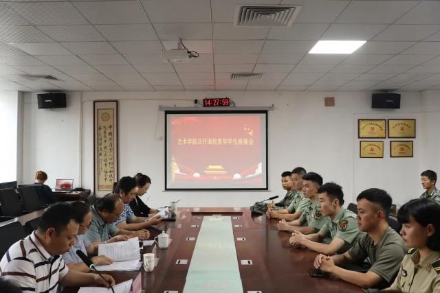 艺术学院党总支书记赵雪政、艺术学院院长方漫、党总支副书记李莉、副院长张博、学生工作科科长胡文毅,团委书记高颖、相关辅导员以及学院全体退役复学学生参加座谈会。