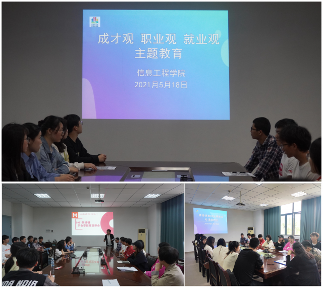 (本网讯:文|钟景/图|张逸云)为引导毕业生树立正确的成才观、职业观、就业观,推动促进2021届毕业生的积极就业,5月18日下午,信工学院在会议室召开“成才观、职业观、就业观”主题教育活动暨专场招聘会,信工学院学生工作科科长吕云飞主持。