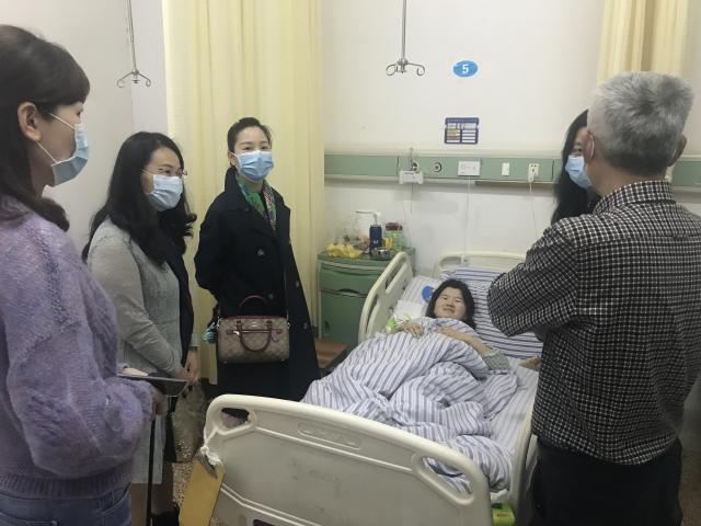 王荣荣同学摔倒后,辅导员余珊珊老师和班上的同学立即前往医院进行陪护。王荣荣同学的父母身处外地,一时无法赶到医院。同班同学自发排班,轮流照顾王荣荣同学。同时,外国语学院党总支书记郭小丽、院长朱练平、党总支副书记吴芹、副院长夏小红以及学工科副科长倪娅第一时间赶往医院,看望了王荣荣。