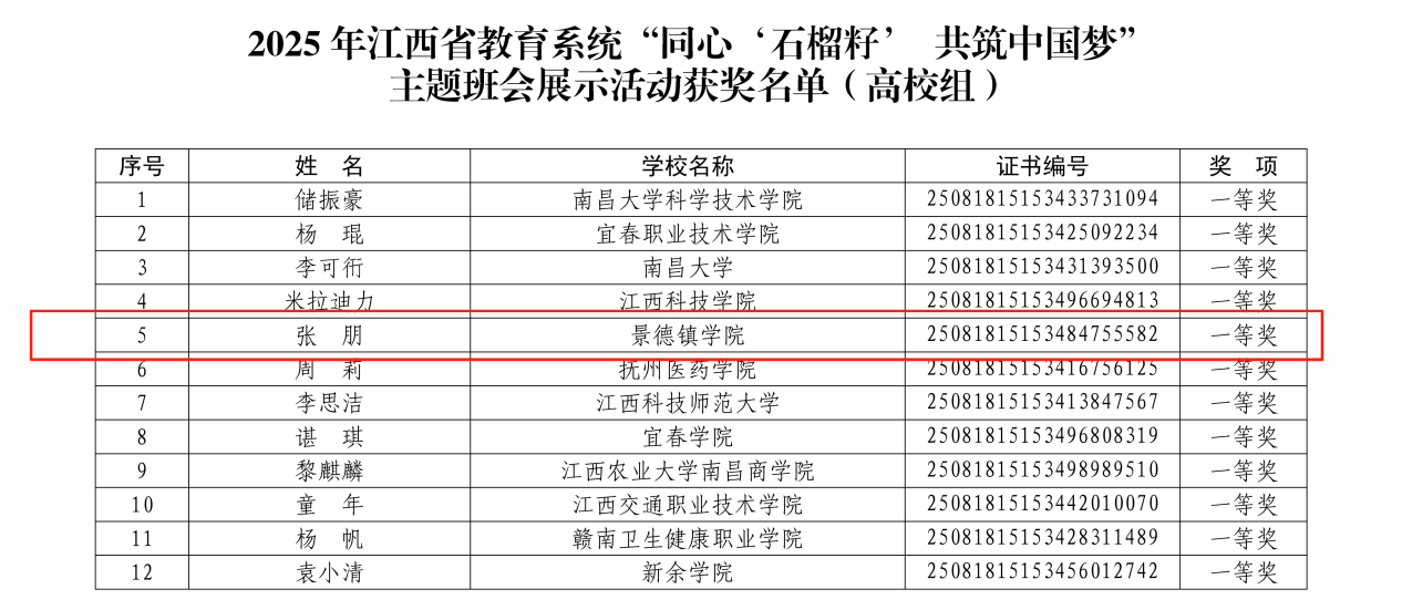 (本网讯:王梦)为深入贯彻落实党的二十大精神和中央民族工作会议精神,推动习近平总书记关于加强和改进民族工作的重要思想进教材、进课堂、进头脑,省教育厅、省委统战部、省民宗局联合开展2025年全省教育系统“同心‘石榴籽’ 共筑中国梦”主题班会展示活动及“石榴花开 赣教风采”江西省高校《中华民族共同体概论》课程教学展示活动。在校党委统战部的指导下,米兰艺术学院辅导员张朋将景德镇深厚的陶瓷文化融入班会主题,深刻挖掘其中蕴含的丰富民族元素和中华民族交往交流交融的历史底蕴,通过生动的育人案例和鲜明的民族团结主题,在主题班会展示活动中获得一等奖;马克思主义学院教师石峰凭借扎实的教学功底和创新的课程设计,在教学展示活动中获得三等奖,充分展现了米兰铸牢中华民族共同体意识教育的丰硕成果和教师队伍的卓越风采!