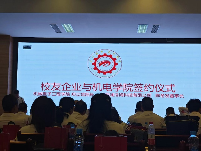 会议在嘹亮的校歌声中拉开帷幕。会议伊始,毛鹏飞致辞欢迎。机电校友分会筹备组代表陈冬发汇报大会筹备情况,欧阳可萃宣读校友会文件。经过会前充分酝酿、大会无记名投票,选举产生了机电学院校友分会会长、执行会长、秘书长及顾问、副会长、监事长和副秘书长。郑昕芾、万文军、赵雪政、毛鹏飞、郑立斌等参会领导分别为成立组织机构人员颁发聘书,并举行了校友企业与机电学院签约仪式。