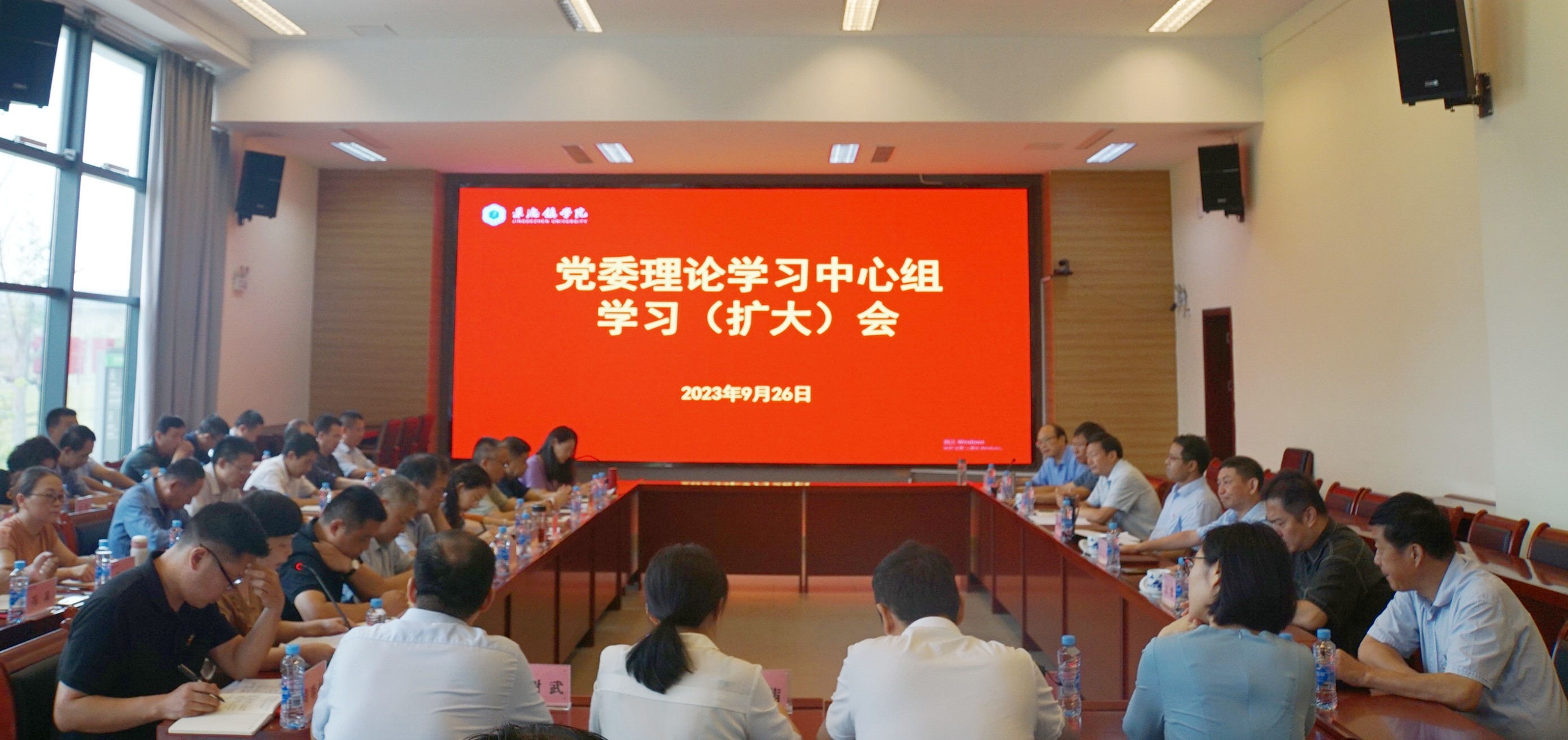 (本网讯:李婷婷)9月26日,校党委理论学习中心组在第一报告厅召开中心组学习(扩大)会议,校党委书记叶观荣主持会议并讲话,党委副书记、校长陈运平,党委副书记王丽心,党委委员、副校长方漫,副校长黄志坚,党委委员、组织部部长朱贺江,党委委员、宣传部部长赵雪政出席会议。