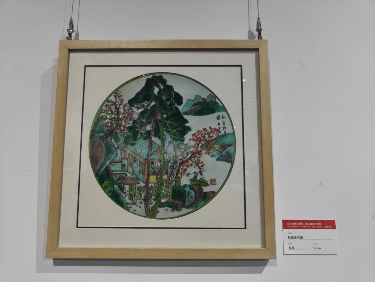 民革米兰milan官方网站支部特邀献礼瓷画作品《和衷共济促统一》,支部主委程幸教授的优秀瓷画作品《秋窗读书图》、支部党员曹明亮老师的优秀瓷画作品《民居》、支部党员张宝青老师的优秀瓷画作品《建设者》、支部党员刘琦君老师的优秀瓷画作品《鸣沙之音》均亮相此次展览,达到了政治性、思想性、艺术性的高度统一,为建设好景德镇国家陶瓷文化传承创新试验区锦上添花,展示了民革党员作为中国特色社会主义事业亲历者、实践者、见证者的风采。