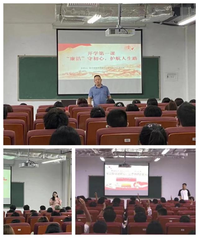 胡文毅以“廉洁守初心,护航人生路”为题,结合身边典型事例,教育引导新生要遵纪守法,树立正确的廉洁观、价值观,养成勤俭节约的生活作风,扣好人生的“第一粒扣子”,走好人生的成长道路。