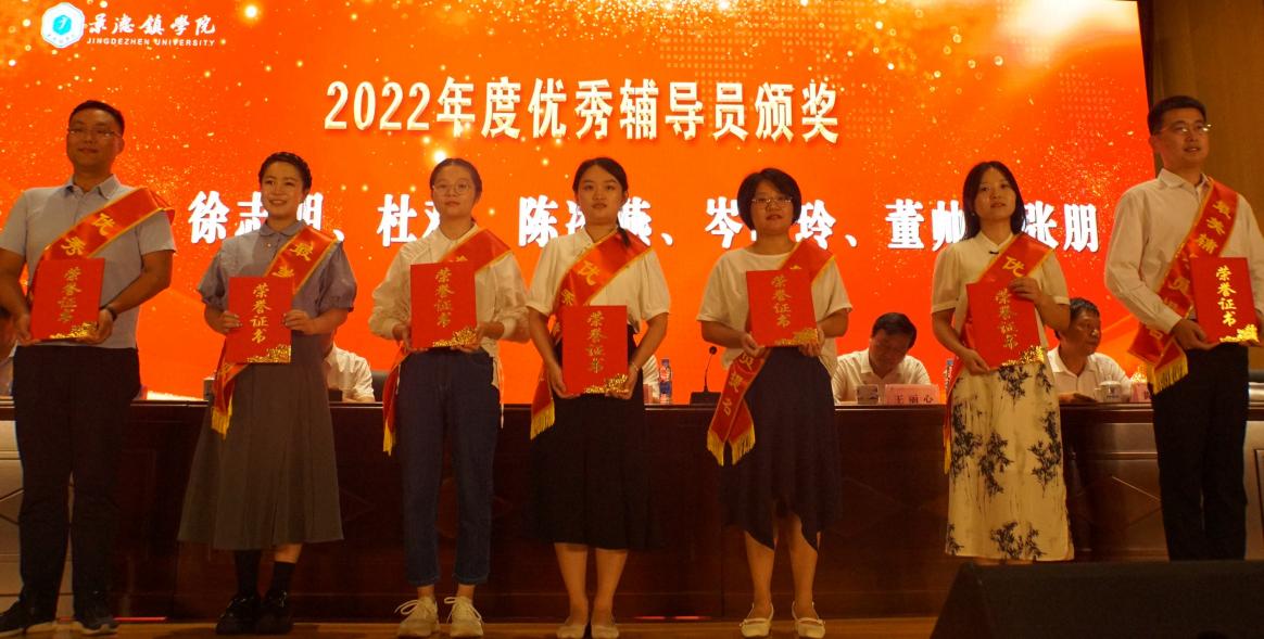 2022年年度优秀辅导员上台领奖 合影 校报记者江珍燕摄