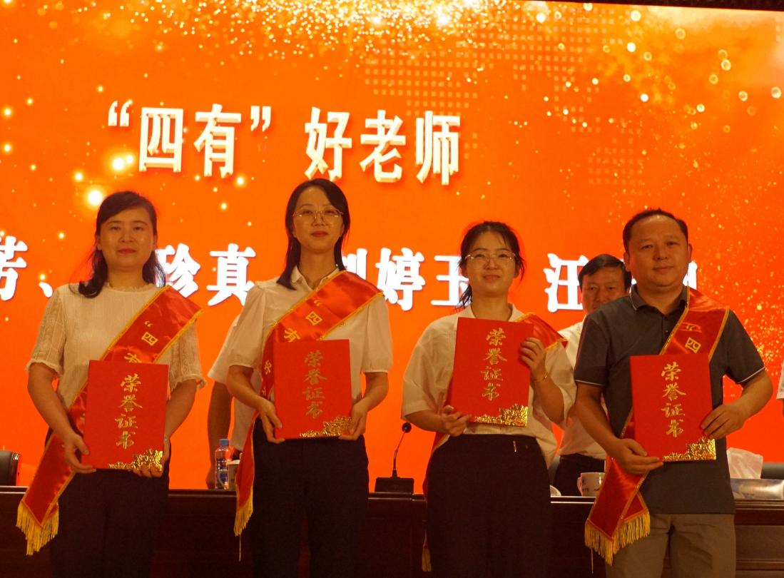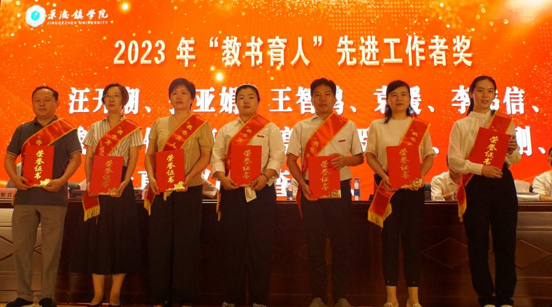 2023年“教书育人”先进工作者上台领奖合影 校报记者江珍燕摄