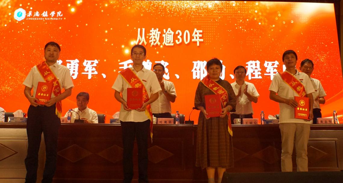从教逾30年教师上台领取荣誉证书 校报记者江珍燕摄