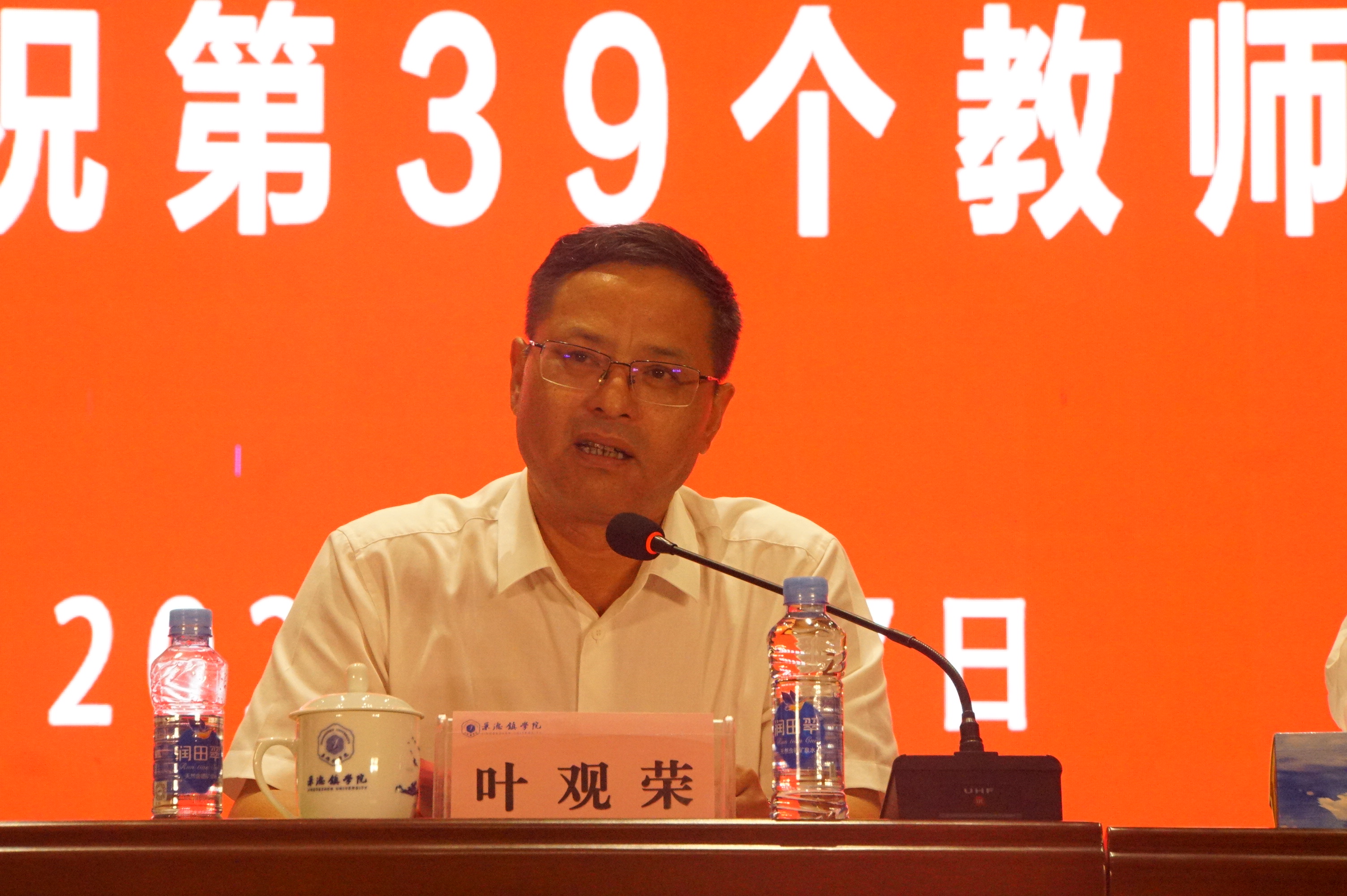 在激昂热烈的国歌声中,大会拉开序幕。学生代表、人文学院21汉语言文学1班李想同学作致辞发言,代表全校一万多名学生向亲爱的老师们致以真挚的节日祝福。70多名新入职教师在领誓人的带领下进行了集体宣誓。