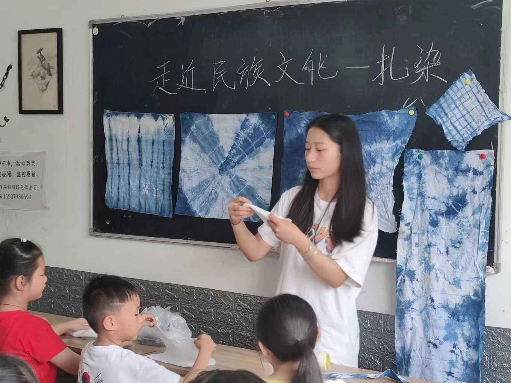 实践团成员带领小朋友们体验手工扎染 朱情摄