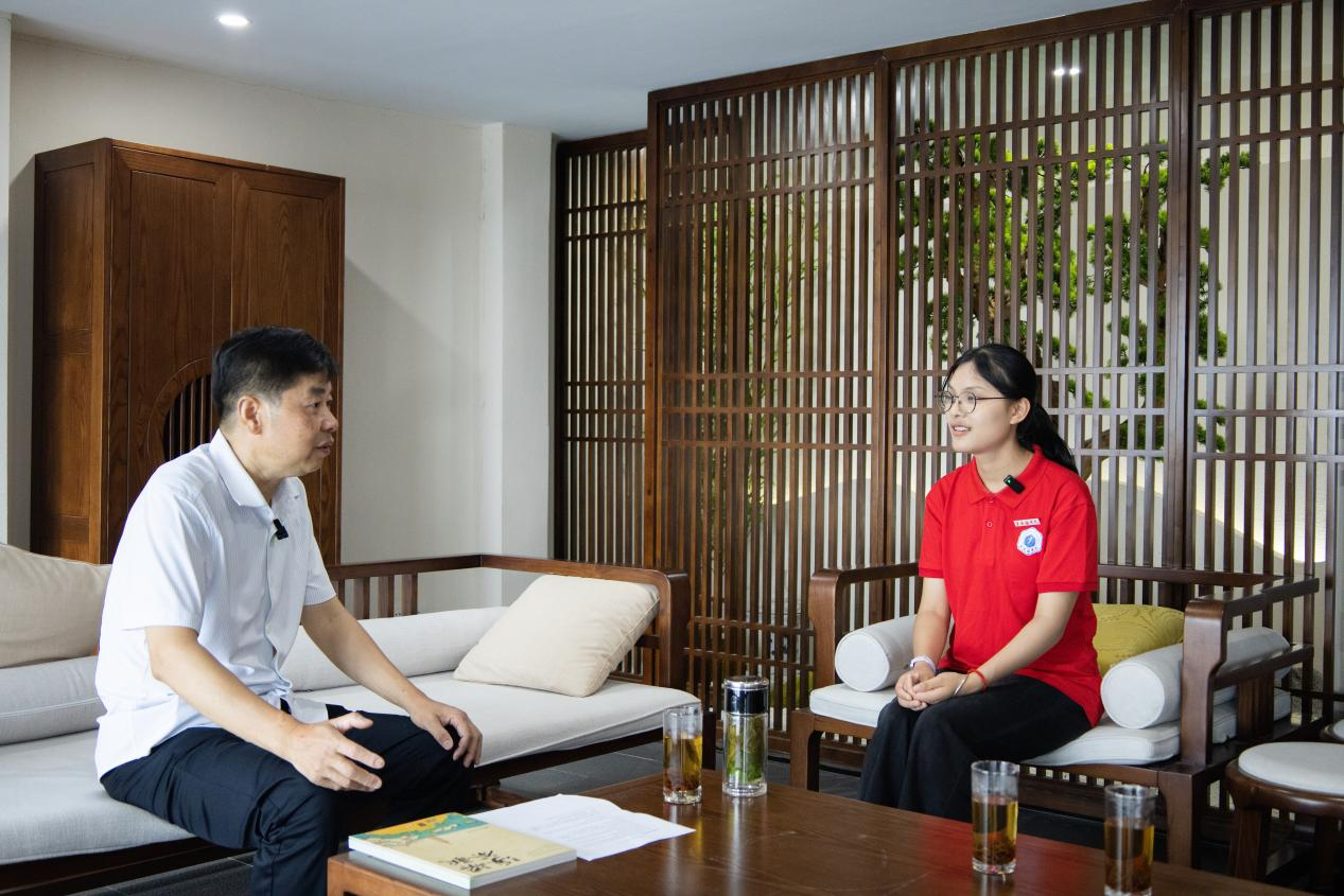 随后,队员们采访了浮梁县政协原主席陈国清,他为大家讲述了浮梁“三贤”的故事,将地方先贤崇德尚义、兴教助农的精神品格与茶文化中“精行俭德”的伦理内核紧密相连。“陈主席讲的‘三贤’的故事,还有茶文化里提倡的‘和’与‘敬’,让我特别受触动。以前只觉得喝茶解渴,今天才明白一杯茶背后有这么多感人的故事和做人的道理!”团队成员、生环学院学生黄雨轩深有感触地说道。