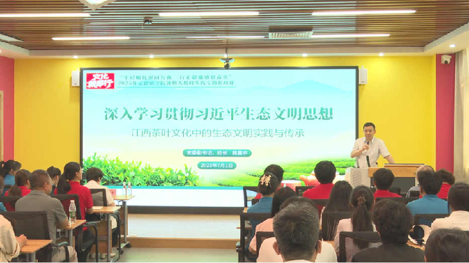 出发前,一堂特殊的思政课为征途注满能量,校党委副书记、校长熊震宇以“深入学习贯彻习近平生态文明思想——江西茶叶文化中的生态文明实践与传承”为题与青年学子同思共学。他指出:“这堂思政课,是我们探访浮梁的‘思想加油站’!大家要握紧文化思想和生态文明思想这把‘金钥匙’,把课堂理论化作脚下沾满泥土的‘真知’,滋养心中沉甸甸的‘家国情怀’!”他寄语实践队员,要在茶园里读懂“绿水青山”,体验“一片叶子”如何串起生态保护、文化传承与百姓福祉;要在烟火村落中触摸“文化脉动”,做茶文化的“青春记录官”,挖掘瓷茶辉映的独特基因;要在青春丈量中思考“青年担当”,以专业知识为浮梁茶产业注入创新活力。