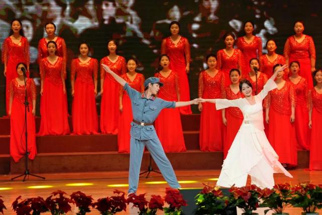 “一送那个我郎当红军呦,家中那个事务你放心呦……”由音乐舞蹈学院院长于芳作曲,刘祥锋合唱改编的红色歌谣《送郎当红军》在舞台上响起。