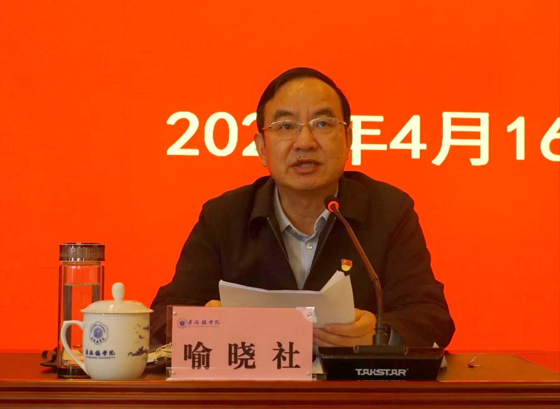 (本网讯:景苑轩)4月16日上午,学校在第一报告厅召开学习贯彻习近平新时代中国特色社会主义思想主题教育动员大会,省委第十一巡回指导组组长、临时党支部书记,省人大农业与农村委员会副主任委员喻晓社出席会议并讲话。学校党委书记叶观荣主持会议并作动员部署讲话。省委第十一巡回指导组副组长、临时党支部副书记,新余市人大常委会副主任林愚及巡回指导组成员出席会议。学校党政班子成员、全校副处以上干部参加会议。