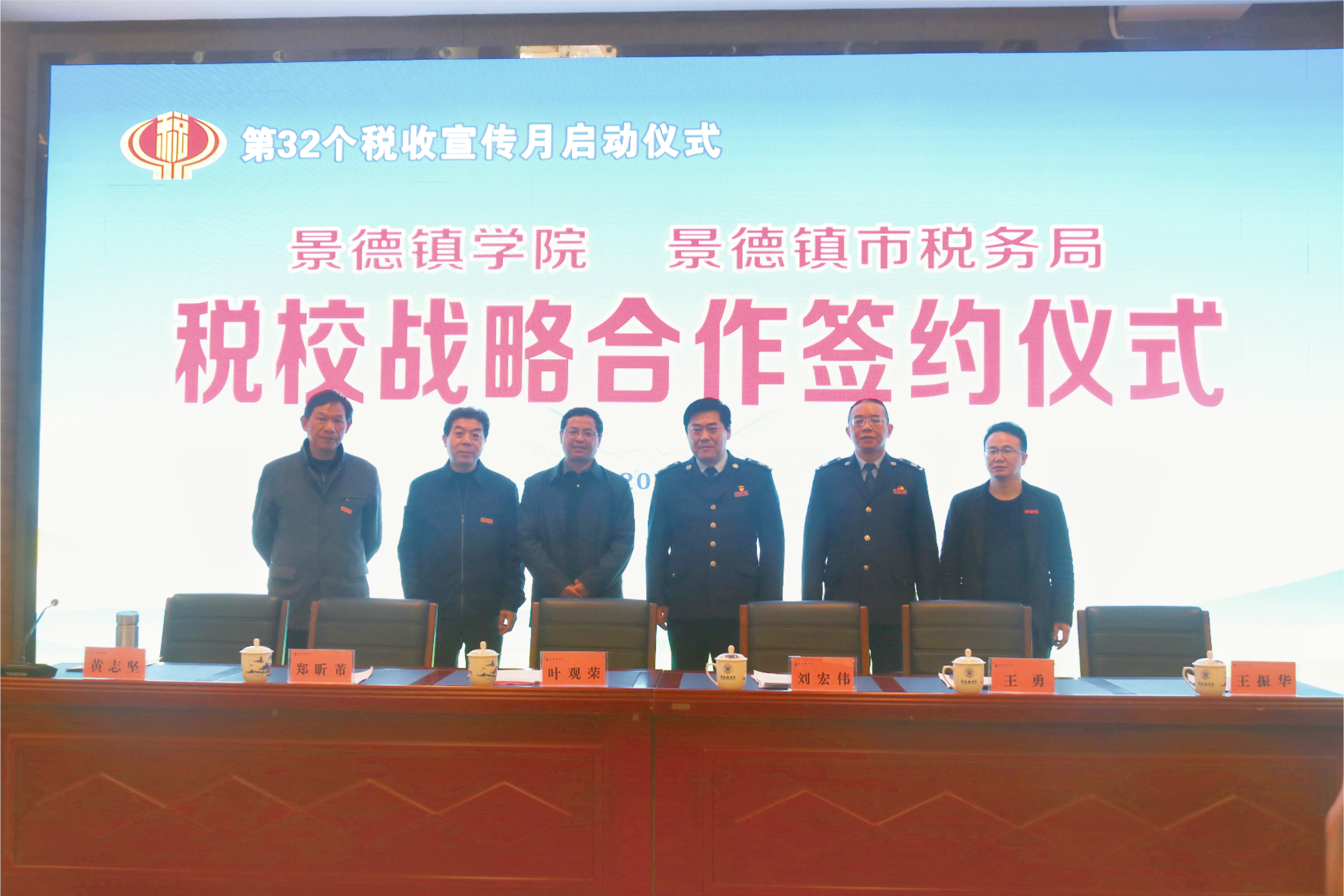 (本网讯:文|景德镇市税务局/图|温乐滨、丁绍华、欧阳晰)4月1日,国家税务总局景德镇市税务局联合米兰开展税法进校园活动,税校共同签署战略合作协议,揭牌成立瓷税大学生创业就业孵化基地,助力拓宽大学生就业渠道,培养和输送更多更优秀的财税人才服务景德镇经济社会发展,拉开了第32个税收宣传月活动序幕。校党委书记叶观荣,党委委员、副校长郑昕芾,教务处处长黄志坚,国家税务总局景德镇市税务局党委书记、局长刘宏伟参加活动。