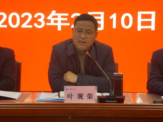 叶观荣代表校党委班子给大家拜晚年,对寒假期间辛勤耕耘在党建、后勤、教学科研等战线中的教职工们表示衷心感谢和崇高敬意。他强调,2023年,学校工作任务重,全体成员要从假期气氛中迅速收心、凝心、聚心,一心一意进入工作状态。他指出,蓝图愿景已经绘就,路径措施已经确定,必须以学习宣传贯彻党的二十大精神为总纲,锚定“做示范、勇争先”,答好“景院人从干什么到怎么干”的新考题。他表示要用“干”破解发展难题,用“干”实现奋斗目标。要怀着真诚“想干”,忠诚笃行、愿干想干,对党忠诚、对信仰虔诚,对事业赤诚,以奋发有为的精神状态和“时时放心不下”的责任意识,推进景院高质量跨越式发展;要扛着担当“敢干”,勇挑重担、有为敢干,敢扛重活、敢揽难活、敢担新活,让更多景院标杆立起来,让更多景院模式树起来,让更多景院品牌亮起来;要瞄着路径“能干”,找准路子、有解能干,走好改革之路、规范之路、团结之路,凝聚“在景院、知景院、爱景院、建景院”的磅礴伟力;要盯着责任“真干”,扛牢责任、踏实真干,明责认责、担责履责、问责追责,以好作风打造好生态,让“躺平式干部”躺不赢、让“混日子干部”没法混。