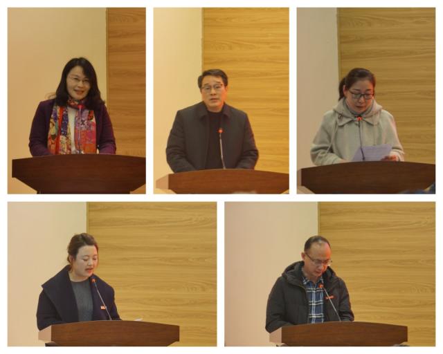 质评中心负责人夏小红、招就处处长、产教融合工作牵头人余少军、生环学院院长田双、艺术学院负责人张博、机电学院院长郑立斌结合学校今年重点工作任务、围绕各自主职主业作表态发言。