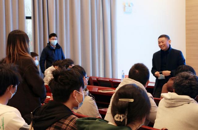 宣讲尾声,陈运平走下讲台,与同学们面对面亲切交流,了解学生心声,关注学生动态。在聆听了同学们的意见,了解了同学们的诉求以后,他表示,全校师生同呼吸共命运,学校会尽力解决同学们的急难愁盼,用行动贯彻落实党的二十大精神,为同学们营造良好的学习和生活环境。