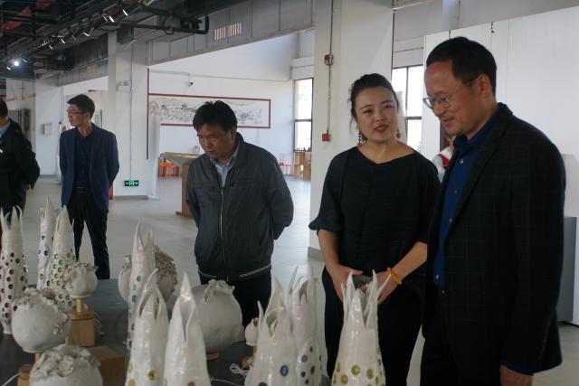 会后,董学友一行到教育学院、陶瓷美术与设计艺术学院实地考察。