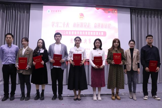 经各二级学院初赛,共有9名青年教师、7名专职团干和12组学生队伍进入各组别决赛。此次微团课大赛以“学习二十大、永远跟党走、奋进新征程”为主题。各参赛选手和队伍结合自身实际和精彩案例,通过PPT展示、演讲、朗诵、书法等多种形式呈现了一堂堂精彩的微团课。在激烈的比赛角逐后,陶瓷美术与设计艺术学院余婕获青年教师组一等奖,经济管理学院张琪获团干组一等奖,陶瓷美术与设计艺术学院初雅琪团队及人文学院吴佳红团队获学生组一等奖。