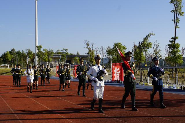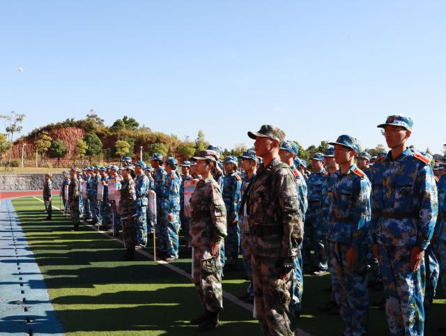 郑昕芾宣布2022级新生军训正式开始,各连队到达指定训练场地进行军训。