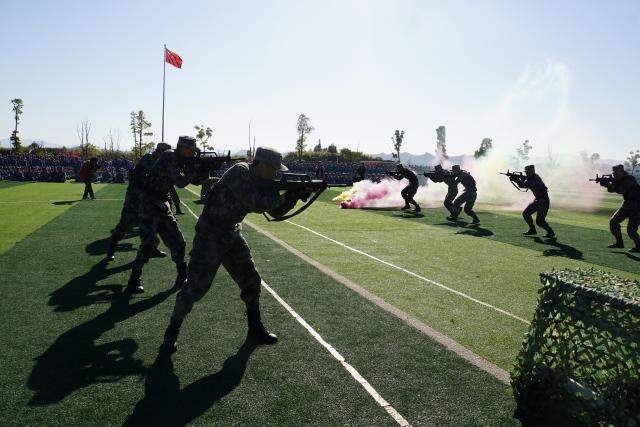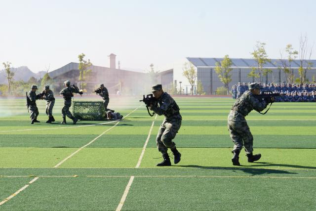 开训仪式在庄严的升旗仪式中拉开序幕。仪式上,教导大队向学生示范展示了擒敌对抗、战术基本动作、小组协同攻坚等演示科目。
