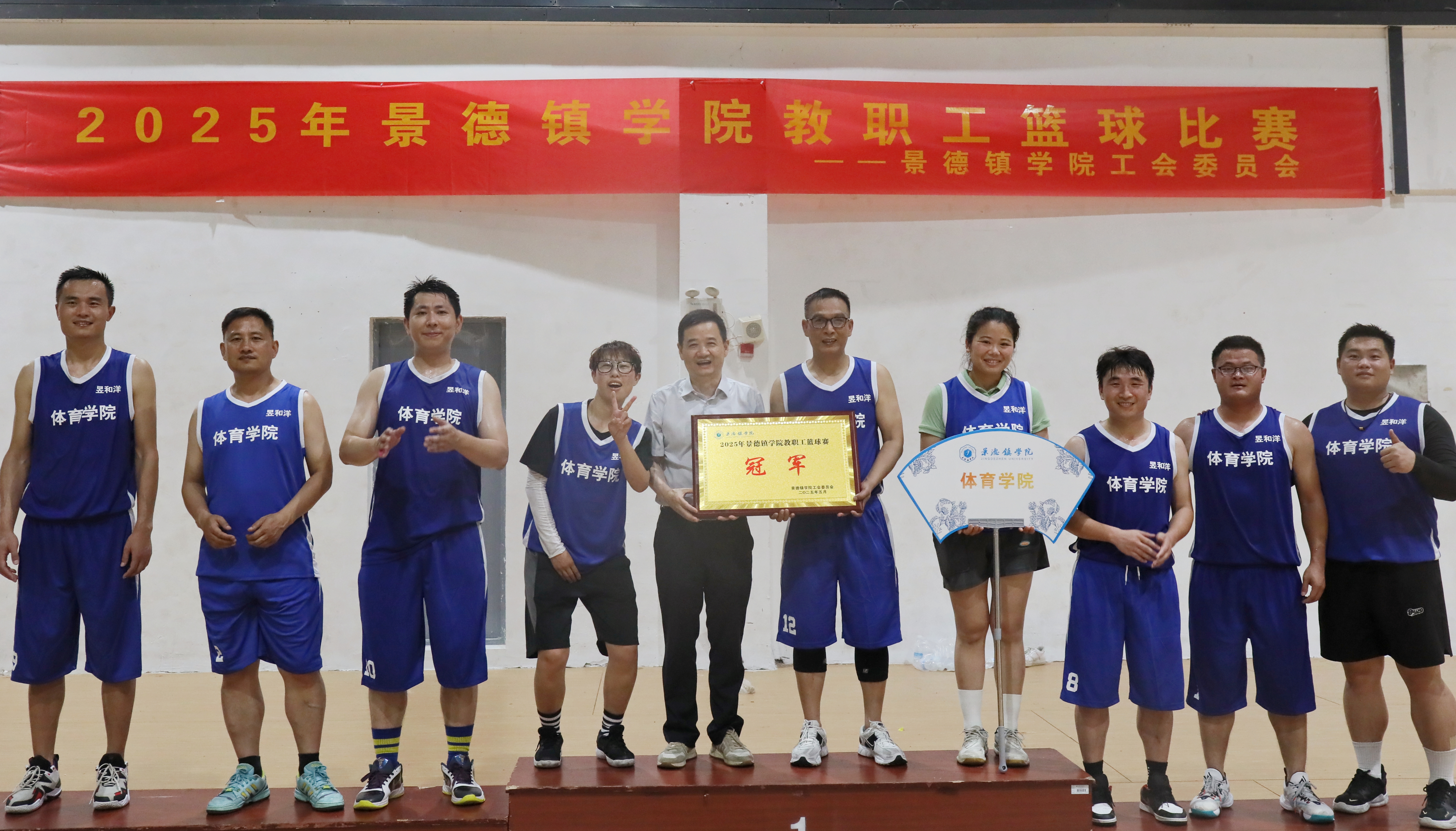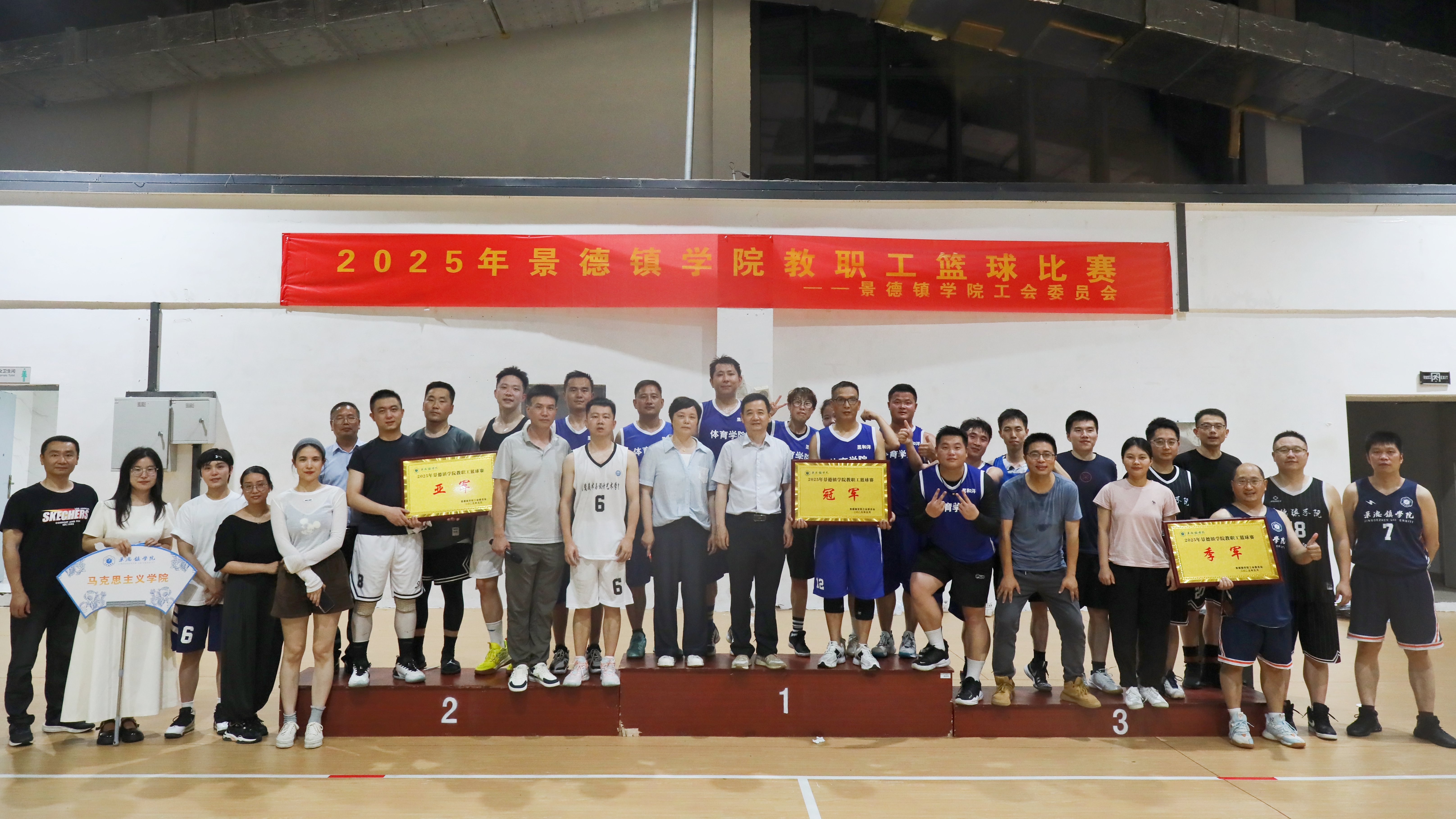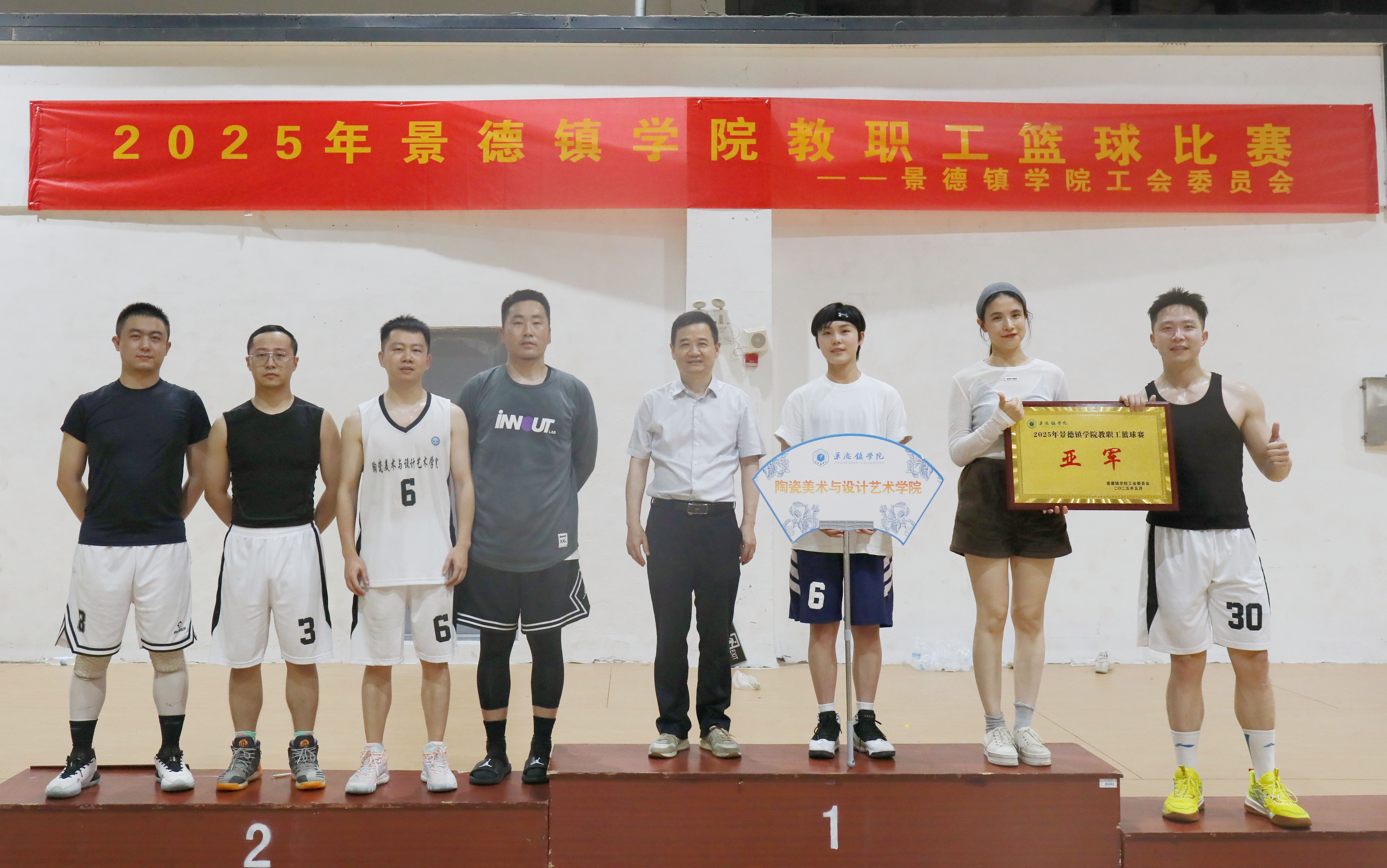 决赛结束后,闭幕式在体育馆室内篮球场举行。裁判长宣布了比赛成绩。熊震宇为冠军队——体育学院队和亚军队——艺术学院队颁发奖牌,校工会主席江畅为季军队——党政部门队颁发奖牌。