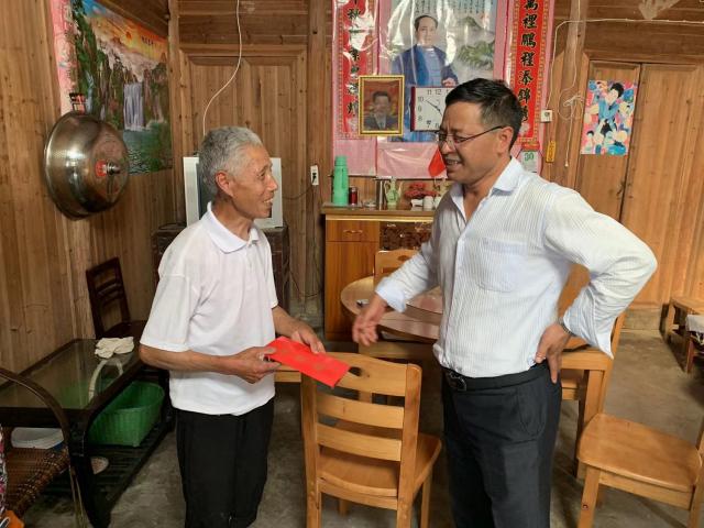 叶观荣来到帮扶对象脱贫户胡顺民家,送上慰问金并与他们亲切交谈,深入了解他们的生产、生活等情况,关切叮嘱他们注意身体,有困难及时联系学校驻村工作队。