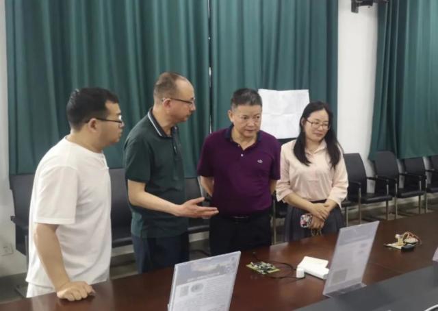 高教研究与评估所所长余金保,机电学院院长郑立斌、党总支副书记毛鹏飞、副院长汪兆栋、教工党支部书记郭瞻及18级毕业生代表陪同参观毕业设计作品展。