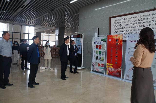 启动仪式后,陈运平、王丽心等校领导参观了“校长荐读”、喜迎二十大图片展、一大至十九大图片展、“你选书我买单”推荐好书等世界读书日活动展板。