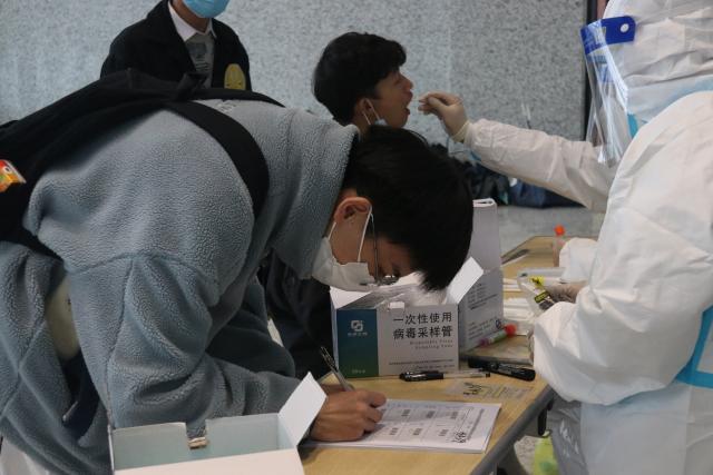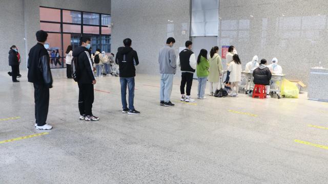 核酸检测现场严格执行防疫措施,医护人员提前到达现场,穿戴好防护服和医用口罩,对采样区进行消毒工作,严格按照采样标准进行操作,整个流程科学规范、井然有序。志愿者在现场引导师生有序排队,配合核酸采样工作,维护现场秩序。师生们全程佩戴口罩,间隔一米有序排队,携带个人检测标签,分批次、分时段有序进入信息采集区和核酸采样区,配合医护人员完成采样工作,结束后迅速离开现场,避免人员聚集。