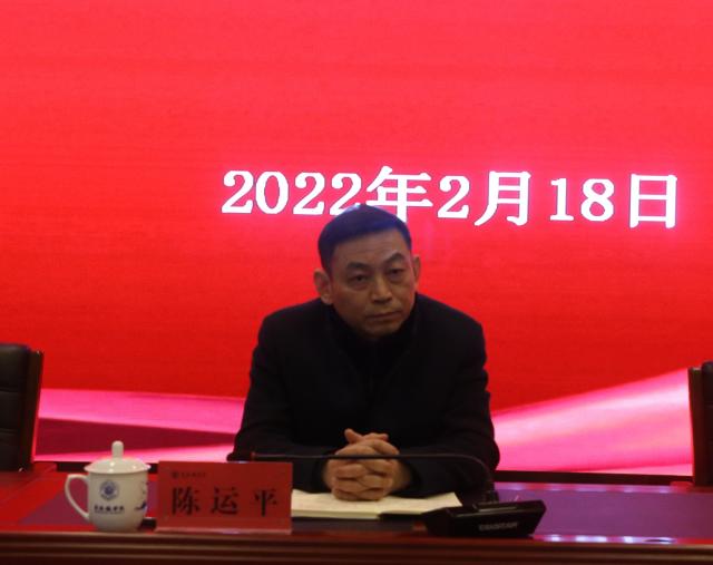 陈运平强调,2022年学校工作要“聚焦一条主线,扛起两大责任,抓好三项工作,加强四项建设”。他指出,今年党的二十大即将召开,这是我们党和国家政治生活中的一件大事,在我们党的历史上,中华人民共和国历史上乃至中国的历史上,都会有重大的政治意义和深远的历史意义。全校工作都要聚焦围绕迎接、学习宣传、贯彻党的二十大这条主线来进行。