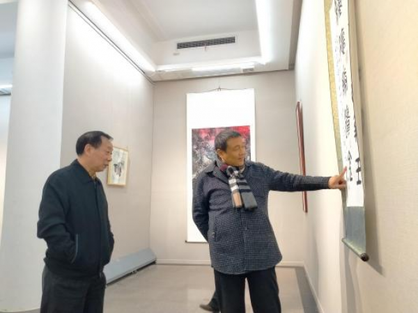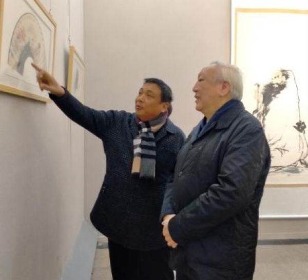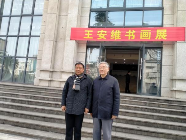 殷国光(右)参观王安维书画展