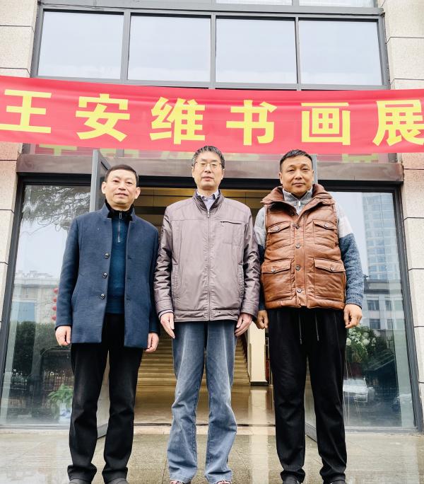 陈运平(左)和谢明勇院士(中)参观王安维书画展