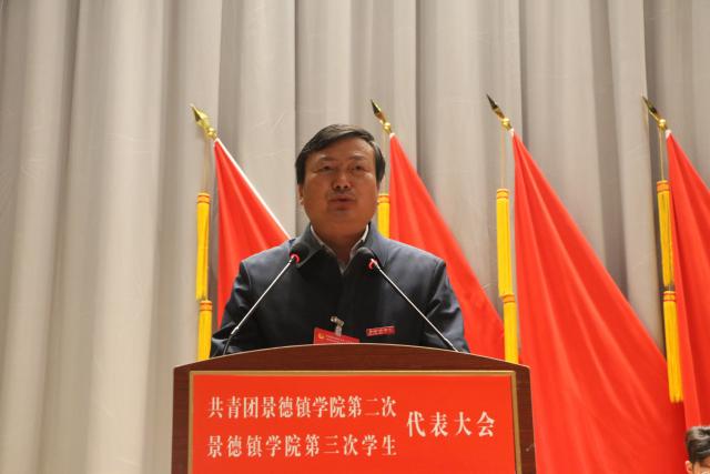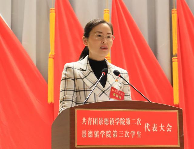 校工会女工委主任翁云晓代表学校工会致辞,李明文代表陶瓷大学团委致辞,赵新代表共青团米兰milan官方网站第一届委员会作《青春向党,铸魂育人,团结带领景院青年在新征程中担当作为》工作报告,肖至诚代表第二届学生委员会作《青春心向党,谱写新篇章,在服务景院学子成长成才中书写青春篇章》工作报告。