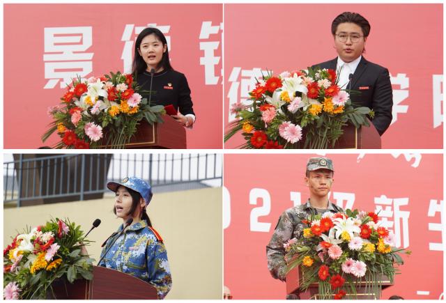 会上,军训教官进行了军训科目展示;教师代表信工学院唐莉、老生代表校学生会执行主席、艺术学院肖至诚、新生代表人文学院2021级汉语言文学2班曾贝琳、军训教官代表陈旭分别上台发言。