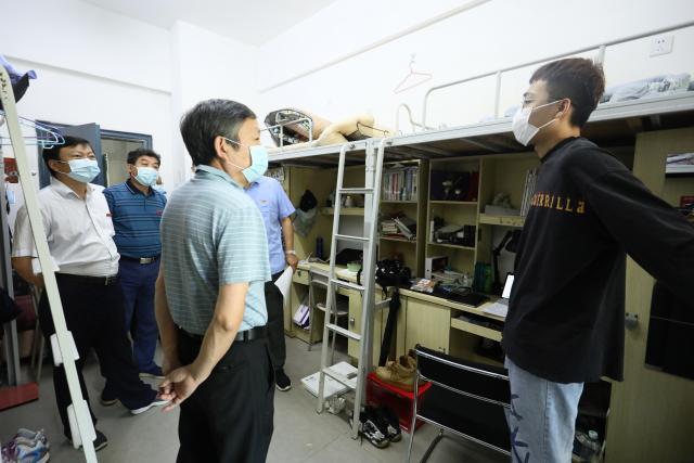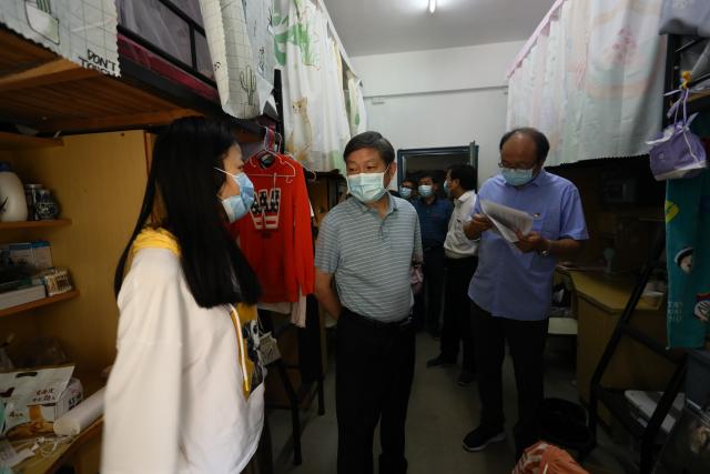 李良智一行首先来到学生寝室,关切询问学生症状、持续时间和身体恢复情况,叮嘱学生不吃生冷食品,注意个人和寝室卫生,勤洗手,常开窗,保持通风;随后来到校医务所,向医务人员了解学生就医情况和注意事项。